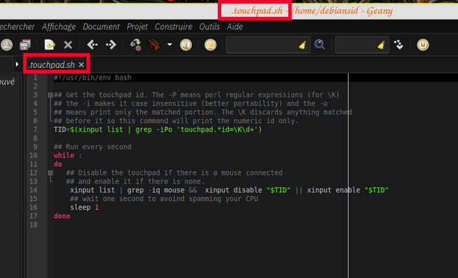 lors de l'utilisation du script bien penser à désactiver le logiciel touchpad-indicator, sinon il y aura conflit entre les 2