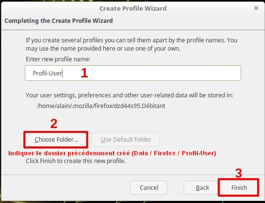 • Le dossier ”intermédiaire” Firefox dans /Data n’est pas obligatoire vous pouvez très bien mettre le dossier Profil-User directement dans /Data .