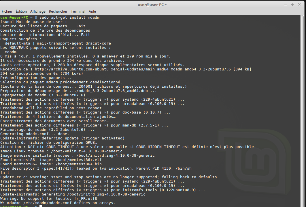 - mdadm : pour le raid logiciel