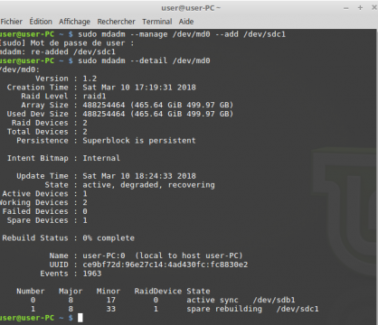 Ce post vous guidera pour obtenir un raid1 logiciel qui vous permettra de limiter la perte de données en cas de panne d'un disque dur contenant vos données personnelles.