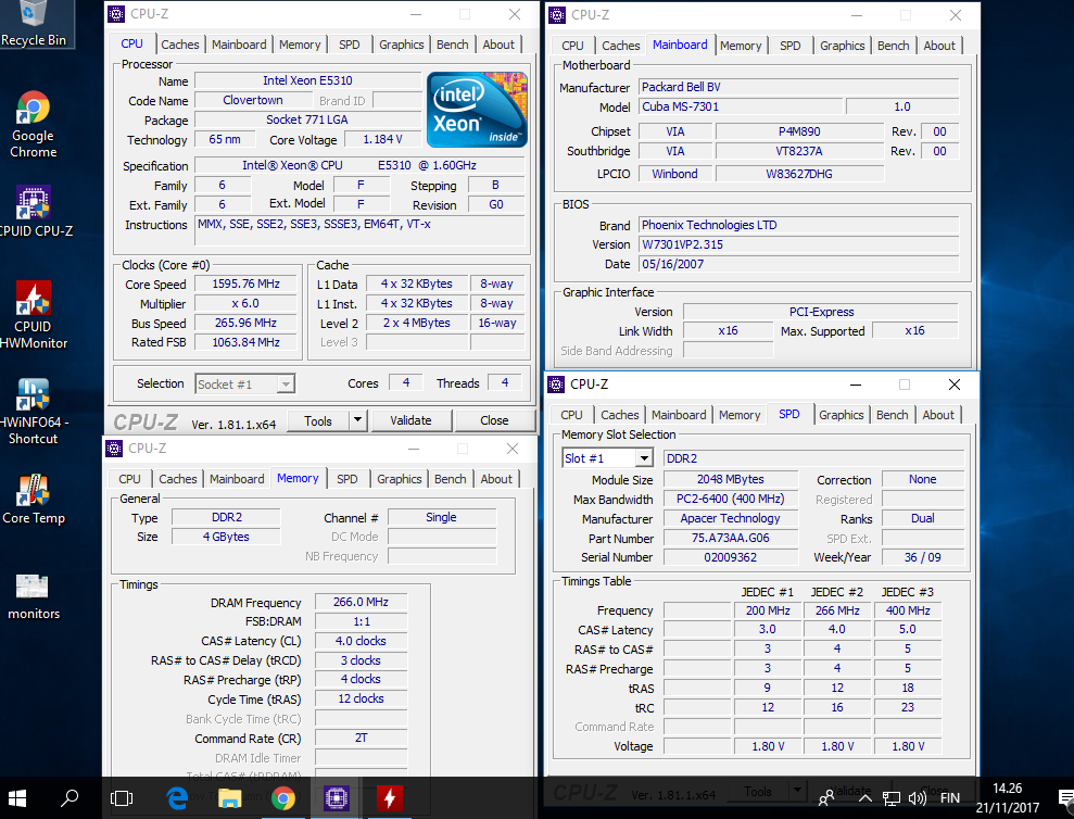intel core 2 6300 1.86gHz 64bits 1gb sdram video geforce 7300se