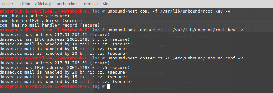 - Test activation DNSSEC (temps réponse unbound plus courte à la 2ème intérrogation)