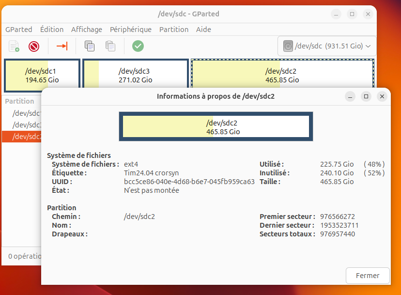 Voici ce que j’ai fait (après partitionnement) :
