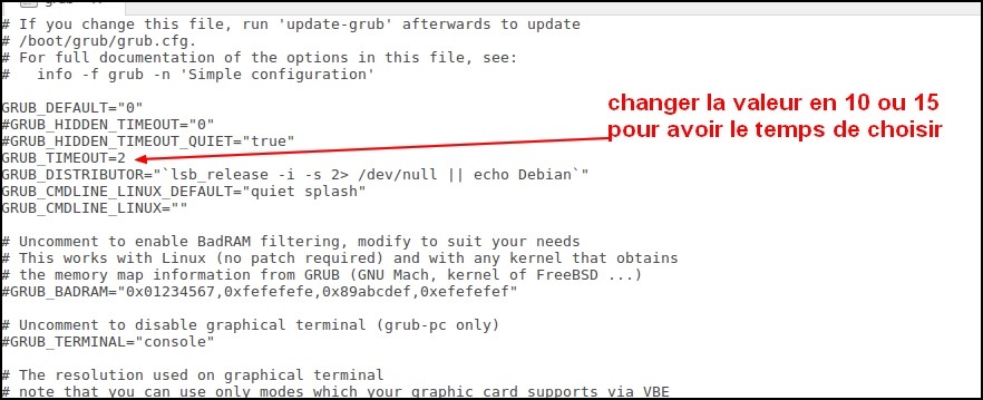 sudo xed /etc/default/grubCode : Tout sélectionner