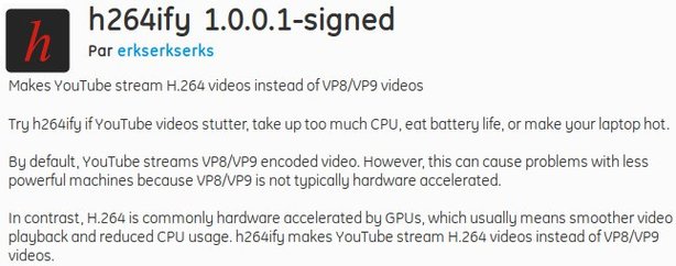 Bonjour et merci. Comment installer l'extension h264ify ?